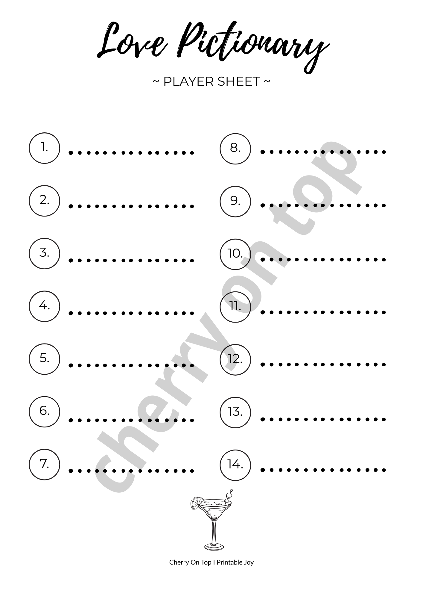 1 x Love Pictionary Players Sheet Printable (PDF, A4)